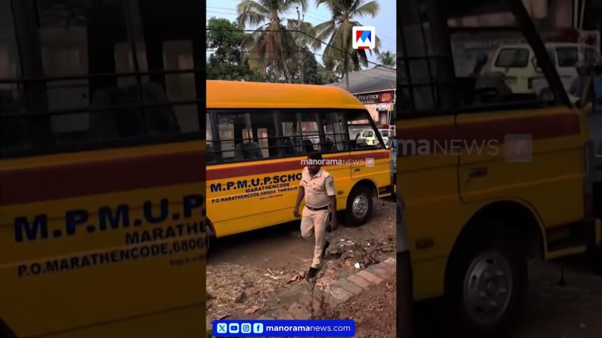 തൃശൂർ : മദ്യപിച്ച് സ്കൂൾ വാഹനം ഓടിച്ച ഡ്രൈവറെ തൃശൂർ എരുമപ്പെട്ടി പോലീസ് അറസ്റ്റ് ചെയ്തു. മരത്തംകോട് എം.പി.എം യു.പി സ്കൂൾ ബസ്സിന്റെ ഡ്രൈവർ എയ്യാൽ മുല്ലപ്പള്ളി വീട്ടിൽ 38 വയസ്സുള്ള മധുവിനെയാണ് അറസ്റ്റ് ചെയ്തത്. ഇന്ന് വൈകീട്ട് 4.30 ന് എസ്.ഐ എ.പി.ആഷിഫിന്റെ നേതൃത്വത്തിൽ നടത്തിയ പരിശോധനയിലാണ് മധു പിടിയിലായത്. ഇയാൾ സ്ഥിരമായി മദ്യപിച്ചാണ് സ്കൂൾ വാഹനം ഓടിക്കുന്നതെന്ന വിവരം പോലീസിനെ ലഭിച്ചിരുന്നു. ഇതിനെ തുടർന്നാണ് പരിശോധന നടത്തിയത്. സ്കൂളിൽ നിന്നും വിദ്യാർത്ഥികളെ വീടുകളിലെത്തിക്കുവാൻ പോകുന്നതിനിടയിലാണ് ഇയാൾ പിടിയിലായത്. പരിശോധനയിൽ ഇയാൾ മദ്യപിച്ചതായി കണ്ടെത്തി. തുടർന്ന് പോലീസ് ഡ്രൈവർ വിഷ്ണുജിത്ത് സ്കൂൾ വാഹനം ഓടിച്ച് കുട്ടികളെ വീടുകളിലെത്തിച്ചു. സ്കൂൾ വാഹനം പോലീസ് കസ്റ്റഡിയിലെടുത്തിട്ടുണ്ട്. ഗ്രേയ്ഡ് എസ്.ഐ വിജയമണി,സി.പി.ഒമാരായ സി.പി.ജിതേഷ്, വിഷ്ണു ജിത്ത് എന്നിവർ ചേർന്നാണ് പ്രതിയെ പിടികൂടിയത്.