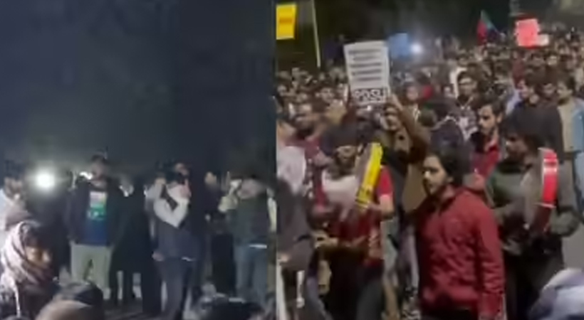 കല്ലെറിഞ്ഞത് എബിവിപി പ്രവർത്തകരാണെന്നും പൊലീസ് കല്ലേറ് തടഞ്ഞില്ലെന്നും വിദ്യാർഥികൾ ആരോപിച്ചു. വൈസ് ചാൻസലറുടെ ദലിത് വിരുദ്ധ പ്രസ്താവനയ്ക്ക് എതിരെയാണ് ക്യാമ്പസിൽ വൻ പ്രതിഷേധം നടന്ന് കൊണ്ടിരിക്കുന്നത്. യുജിസി ചട്ടങ്ങളുമായി ബന്ധപ്പെട്ട പോഡ്കാസ്റ്റിനിടെ സർവകലാശാല വൈസ് ചാൻസലർ പ്രൊഫ. ശാന്തിശ്രീ ധൂലിപുരി പണ്ഡിറ്റ് നടത്തിയ വിവാദ പ്രസ്താവനയാണ് പ്രതിഷേധങ്ങൾക്ക് ഇടയാക്കിയത്. ഫെബ്രുവരി 16ന് പുറത്തിറങ്ങിയ പോഡ്കാസ്റ്റിൽ ജെഎൻയു വിസി നടത്തിയ പ്രസ്താവനകൾ ജാതി അധിക്ഷേപം നിറഞ്ഞതും ഭരണഘടന തത്വങ്ങൾക്ക് വിരുദ്ധവുമാണെന്ന് ജെഎൻയു വിദ്യാർഥി യൂണിയൻ ആരോപിച്ചു.