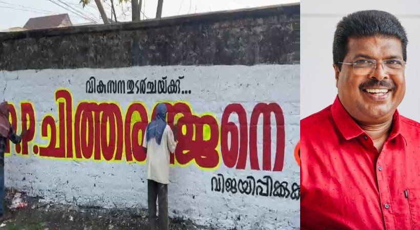 സിറ്റിംഗ് എംഎല്എമാര് തന്നെ ആലപ്പുഴ ജില്ലയിലെ സീറ്റകളില് മത്സരിക്കട്ടെയെന്ന പാര്ട്ടി തീരുമാനത്തിന് പിന്നാലെയാണ് പിപി ചിത്തരഞ്ജന് പ്രചരണം ആരംഭിച്ചത്. എല്ഡിഎഫ് ബുക്ക് ചെയ്തിട്ട ചുവരുകളില് ചിത്തരഞ്ജന്റെ ചിത്രം സഹിതമാണ് ചുവരെഴുത്ത്. വികസന തുടര്ച്ചക്ക് സഖാവ് പിപി ചിത്തരഞ്ജന് എന്ന തലക്കെട്ടിലാണ് ചുവരെഴുത്തുകള്. തിരഞ്ഞെടുപ്പ് ചിഹ്നവും ഉള്പ്പെടുത്തി.